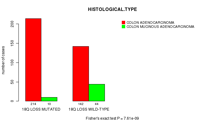 Table S18. Gene #70: '18q loss mutation analysis' versus Clinical Feature #4: 'HISTOLOGICAL.TYPE'