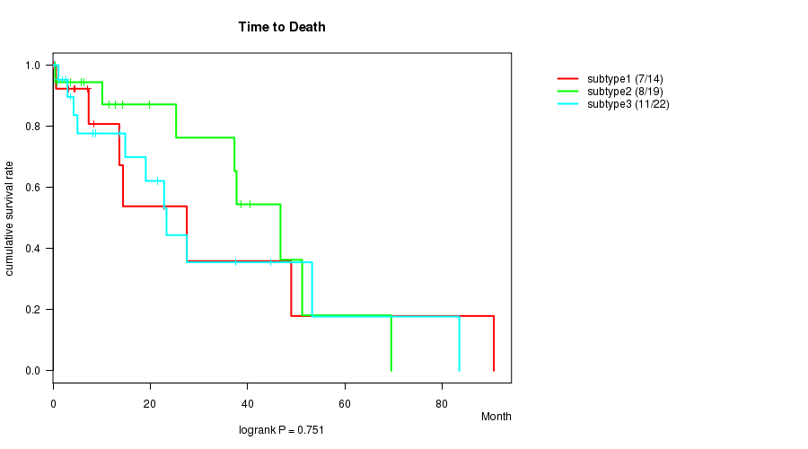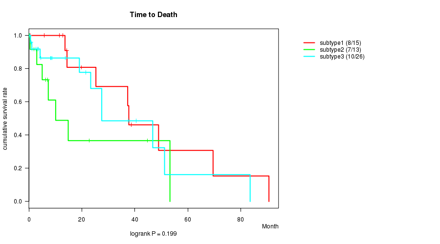 Figure S7. Get High-res Image Clustering Approach #3: 'MIRseq CNMF subtypes' versus Clinical Feature #1: 'Time to Death'