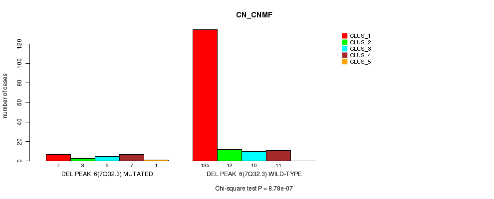 Del Peak 6(7q32.3) cnvs correlated to 'CN_CNMF', 'METHLYATION_CNMF', 'MIRSEQ_CNMF', and 'MIRSEQ_CHIERARCHICAL'.