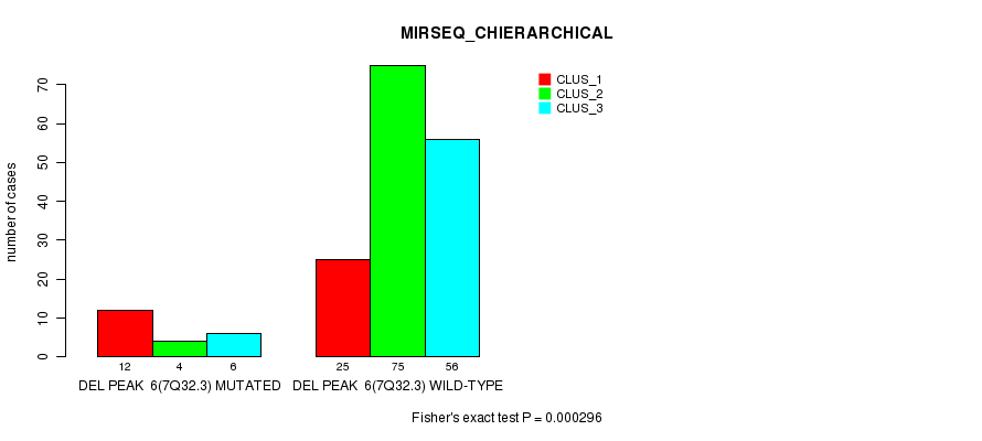Figure S23. Get High-res Image Gene #11: 'Del Peak 6(7q32.3) mutation analysis' versus Clinical Feature #6: 'MIRSEQ_CHIERARCHICAL'