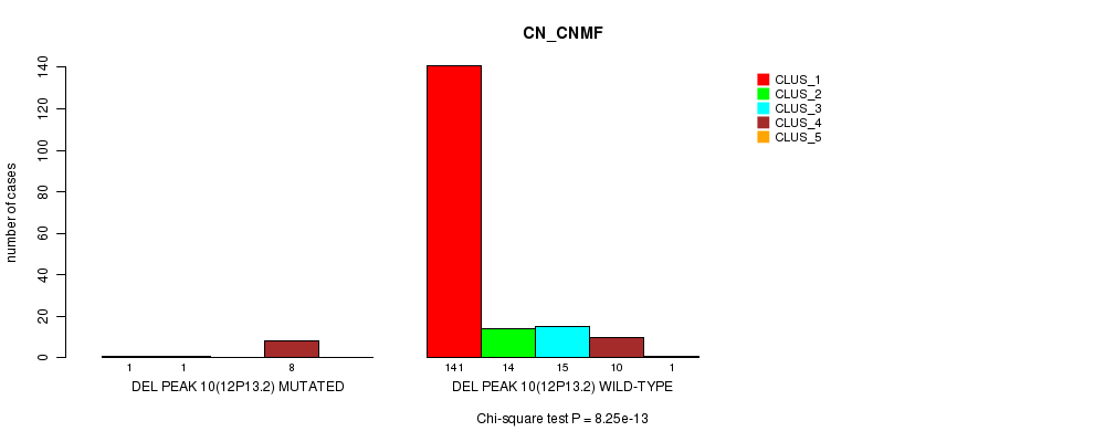 Figure S28. Get High-res Image Gene #14: 'Del Peak 10(12p13.2) mutation analysis' versus Clinical Feature #1: 'CN_CNMF'