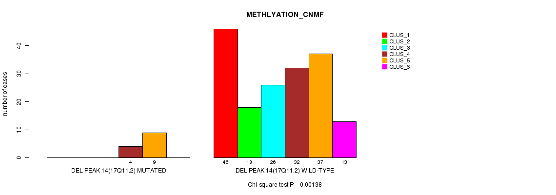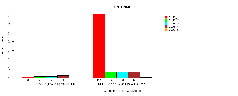 Del Peak 14(17q11.2) cnvs correlated to 'CN_CNMF' and 'METHLYATION_CNMF'.