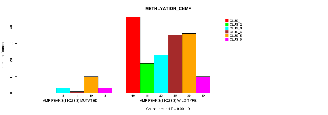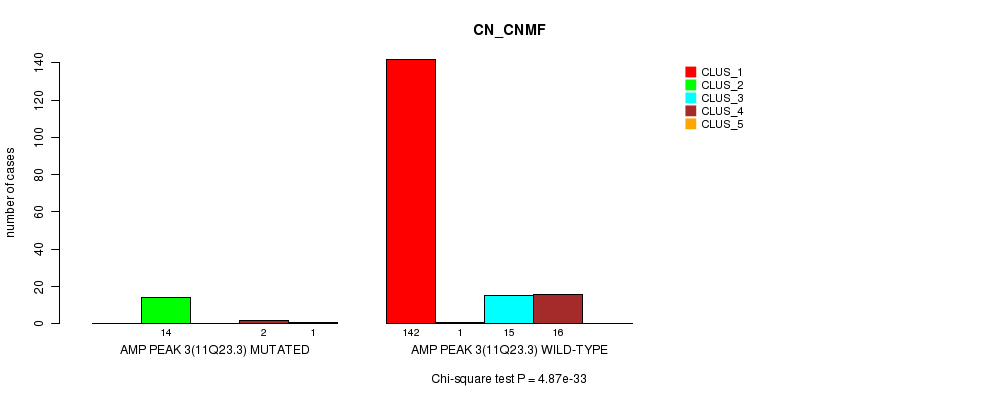 Amp Peak 3(11q23.3) cnvs correlated to 'CN_CNMF' and 'METHLYATION_CNMF'.