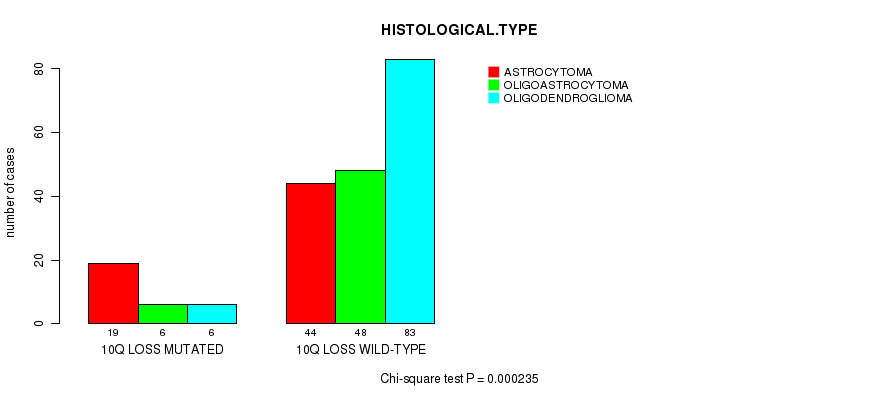 Table S45. Clustering Approach #35: '10p loss mutation analysis' versus Clinical Feature #5: 'HISTOLOGICAL.TYPE'