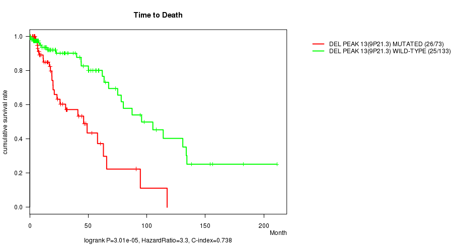 | DEL PEAK 13(9P21.3) MUTATED | 73 | 26 | 0.1 - 117.4 (14.7) |