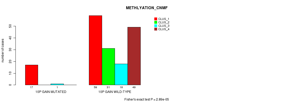 10p gain cnv correlated to 'CN_CNMF' and 'METHLYATION_CNMF'.
