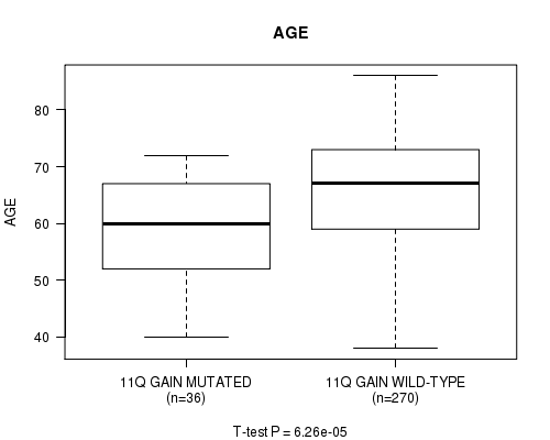 2 subtypes identified in current cancer cohort by '11q gain mutation analysis'. These subtypes correlate to 'AGE'.
