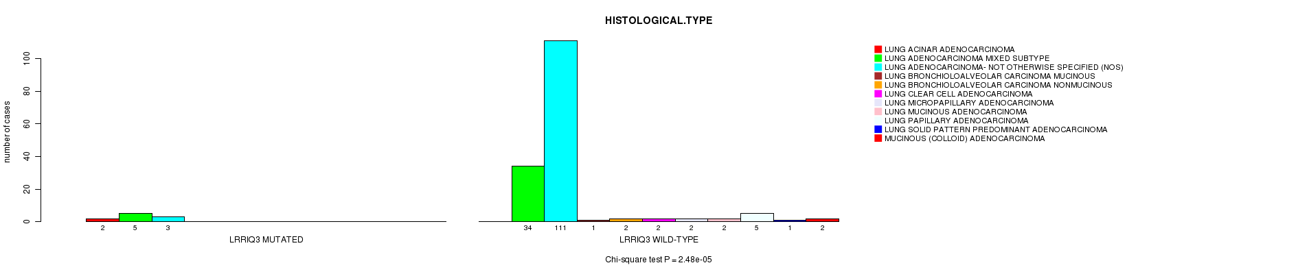 LRRIQ3 mutation correlated to 'HISTOLOGICAL.TYPE'.