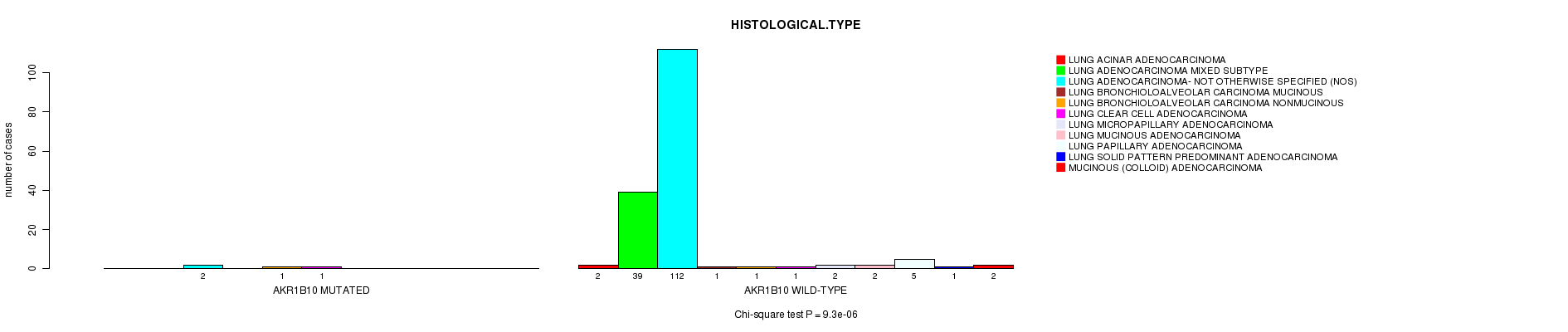 AKR1B10 mutation correlated to 'HISTOLOGICAL.TYPE'.