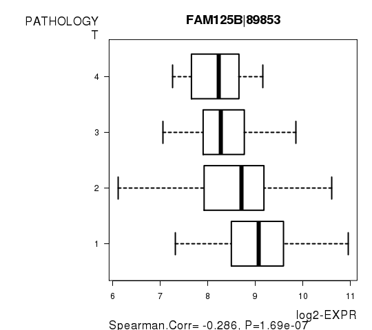 Figure S6. Get High-res Image As an example, this figure shows the association of C19ORF10|56005 to 'PATHOLOGICSPREAD(M)'. P value = 1.67e-08 with ANOVA analysis.
