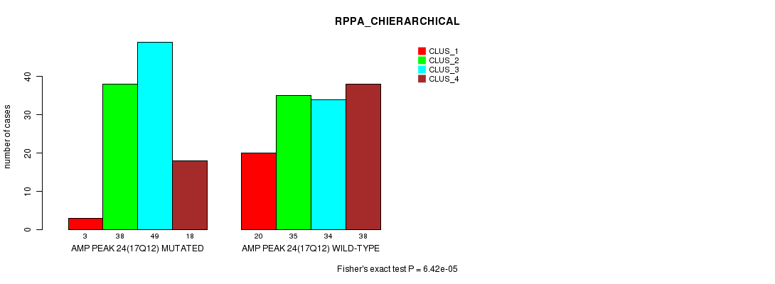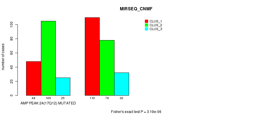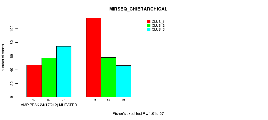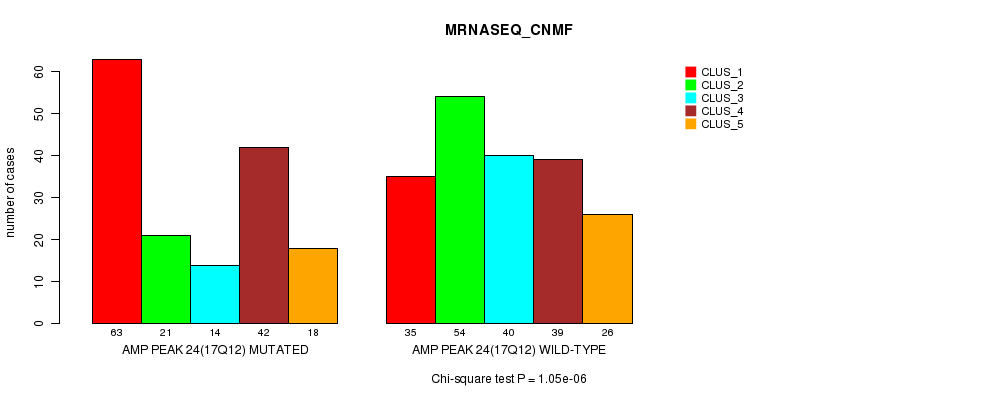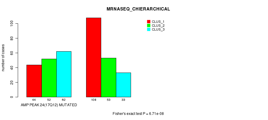 Amp Peak 24(17q12) cnvs correlated to 'CN_CNMF', 'METHLYATION_CNMF', 'RPPA_CHIERARCHICAL', 'MRNASEQ_CNMF', 'MRNASEQ_CHIERARCHICAL', 'MIRSEQ_CNMF', and 'MIRSEQ_CHIERARCHICAL'.