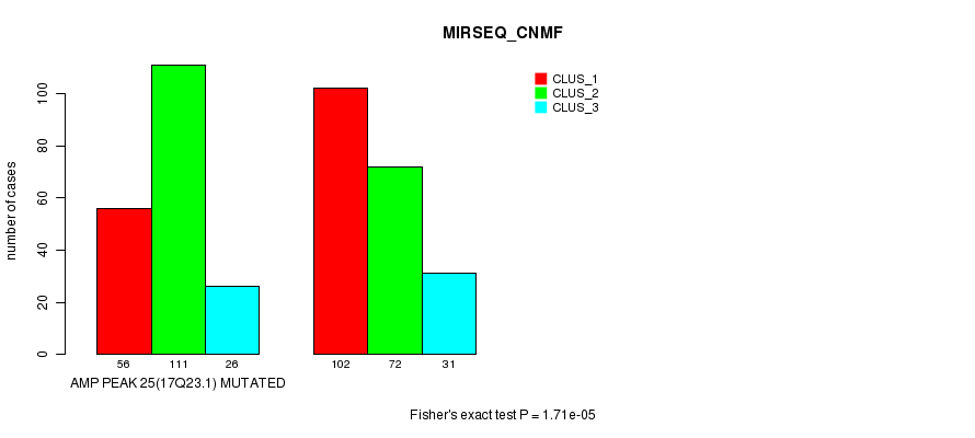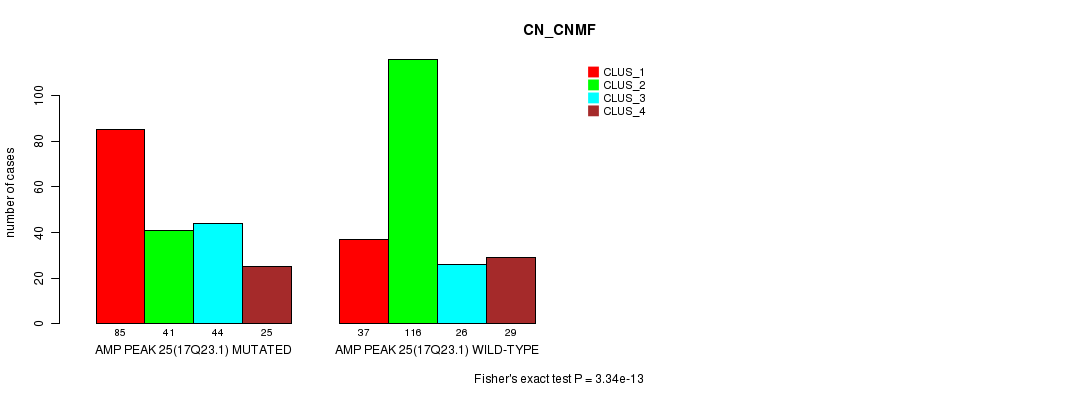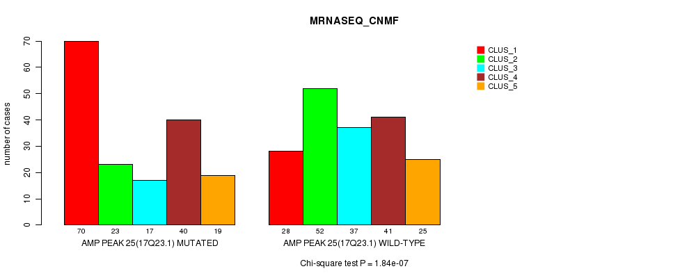 Amp Peak 25(17q23.1) cnvs correlated to 'CN_CNMF', 'METHLYATION_CNMF', 'RPPA_CHIERARCHICAL', 'MRNASEQ_CNMF', 'MRNASEQ_CHIERARCHICAL', 'MIRSEQ_CNMF', and 'MIRSEQ_CHIERARCHICAL'.