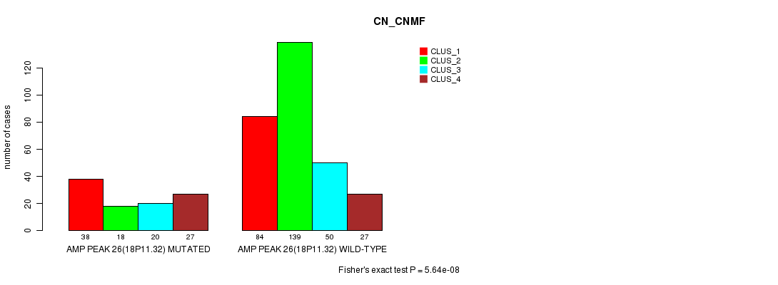 Amp Peak 26(18p11.32) cnvs correlated to 'CN_CNMF' and 'MIRSEQ_CHIERARCHICAL'.