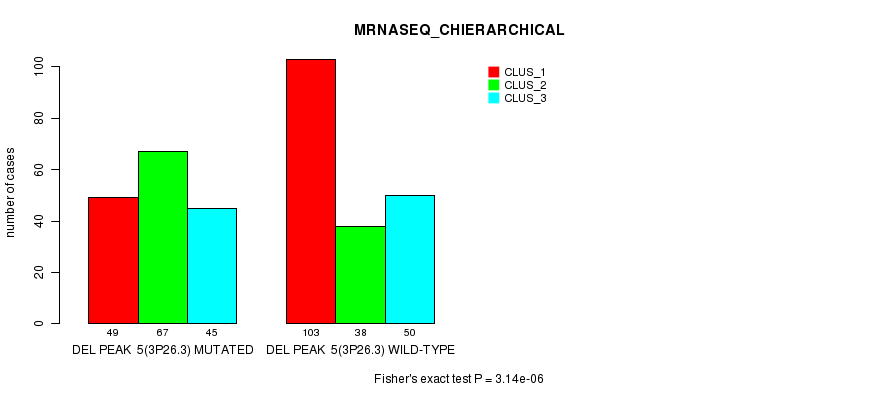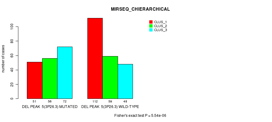 Del Peak 5(3p26.3) cnvs correlated to 'CN_CNMF', 'MRNASEQ_CHIERARCHICAL', 'MIRSEQ_CNMF', and 'MIRSEQ_CHIERARCHICAL'.