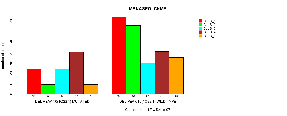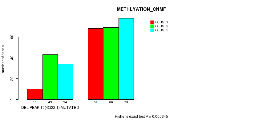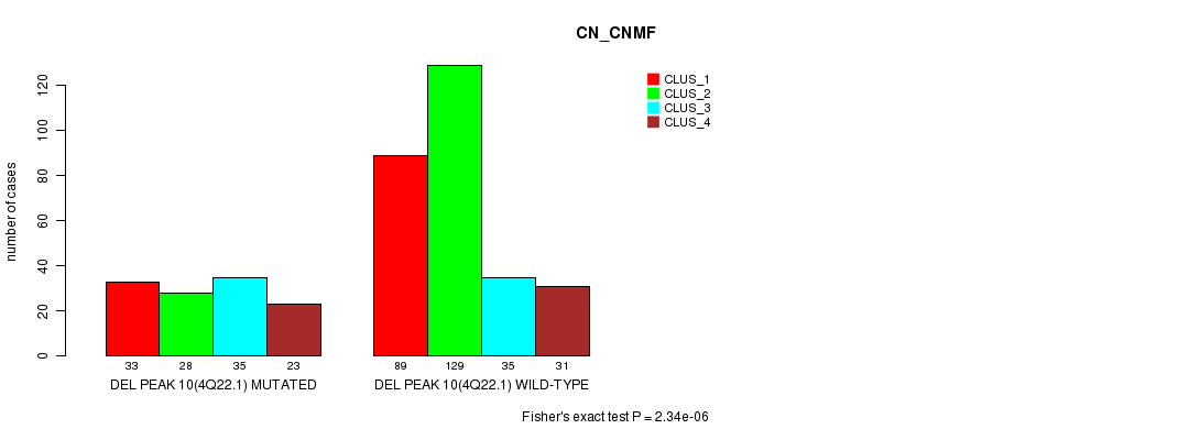 Del Peak 10(4q22.1) cnvs correlated to 'MRNA_CNMF', 'MRNA_CHIERARCHICAL', 'CN_CNMF', 'METHLYATION_CNMF', 'MRNASEQ_CNMF', 'MRNASEQ_CHIERARCHICAL', 'MIRSEQ_CNMF', and 'MIRSEQ_CHIERARCHICAL'.