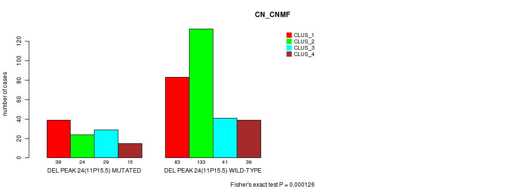 Del Peak 24(11p15.5) cnvs correlated to 'CN_CNMF' and 'MRNASEQ_CHIERARCHICAL'.