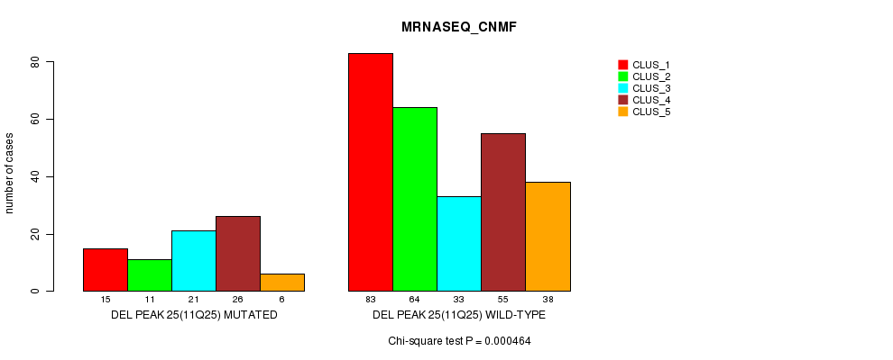 Del Peak 25(11q25) cnvs correlated to 'MRNASEQ_CNMF'.