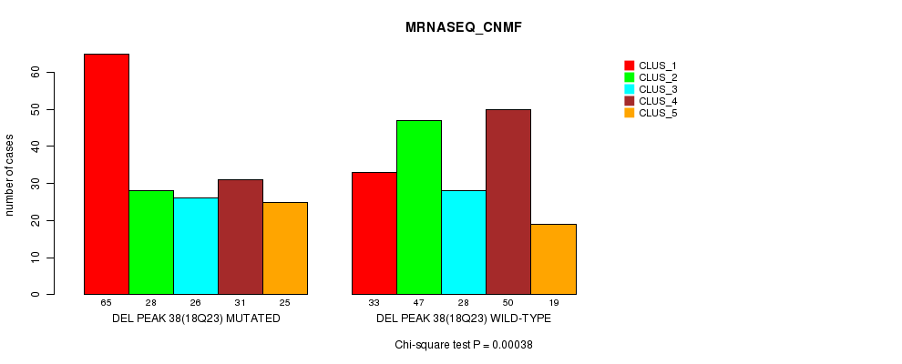 Del Peak 38(18q23) cnvs correlated to 'CN_CNMF' and 'MRNASEQ_CNMF'.
