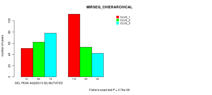 Figure S252. Get High-res Image Gene #76: 'Del Peak 44(22q13.32) mutation analysis' versus Clinical Feature #10: 'MIRSEQ_CHIERARCHICAL'