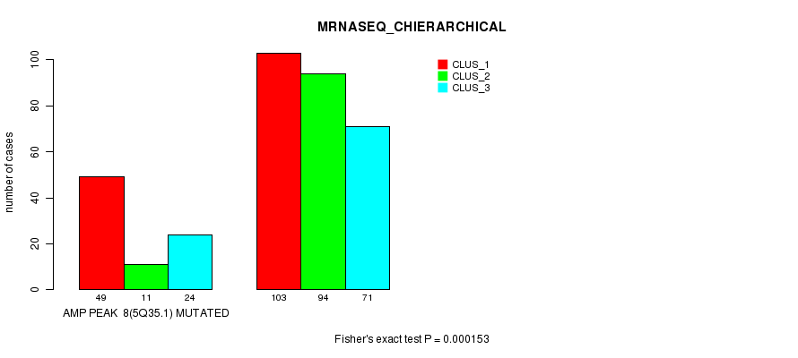 Amp Peak 8(5q35.1) cnvs correlated to 'CN_CNMF', 'METHLYATION_CNMF', and 'MRNASEQ_CHIERARCHICAL'.