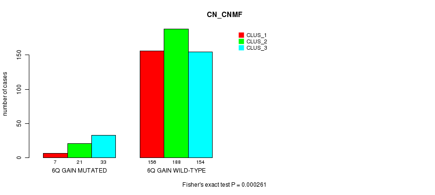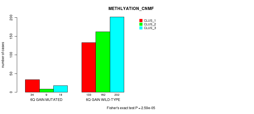 6q gain cnv correlated to 'CN_CNMF' and 'METHLYATION_CNMF'.