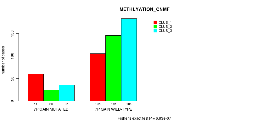 7p gain cnv correlated to 'CN_CNMF' and 'METHLYATION_CNMF'.