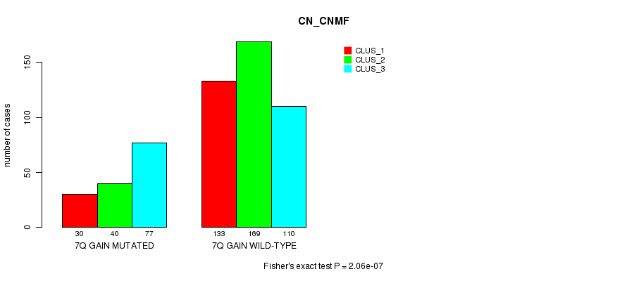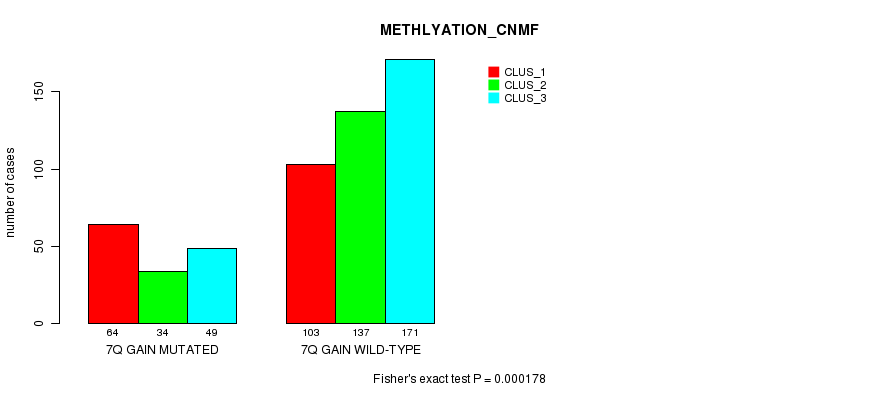 7q gain cnv correlated to 'CN_CNMF' and 'METHLYATION_CNMF'.