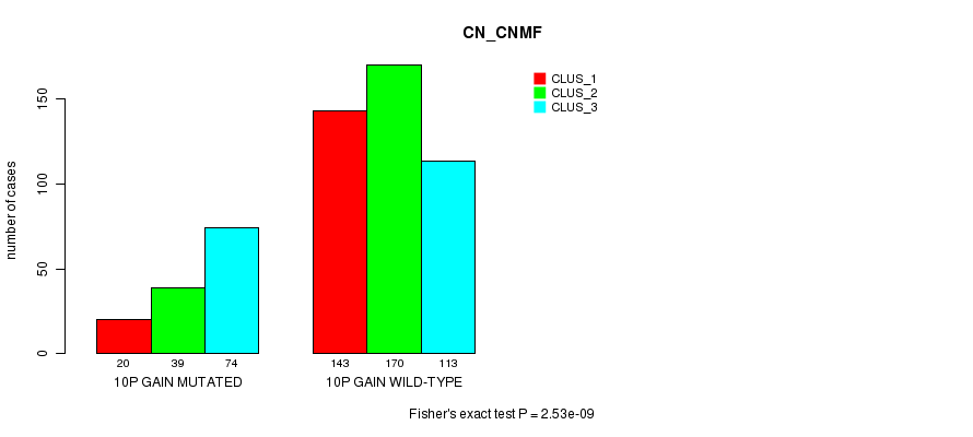 10p gain cnv correlated to 'MRNA_CHIERARCHICAL' and 'CN_CNMF'.