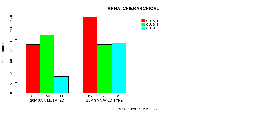 Figure S42. Get High-res Image Gene #37: '20q gain mutation analysis' versus Clinical Feature #2: 'MRNA_CHIERARCHICAL'