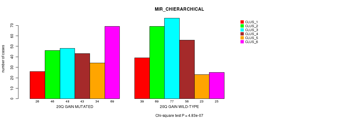 Table S43. Gene #37: '20q gain mutation analysis' versus Clinical Feature #4: 'MIR_CHIERARCHICAL'