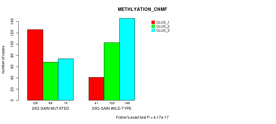Figure S45. Get High-res Image Gene #37: '20q gain mutation analysis' versus Clinical Feature #6: 'METHLYATION_CNMF'