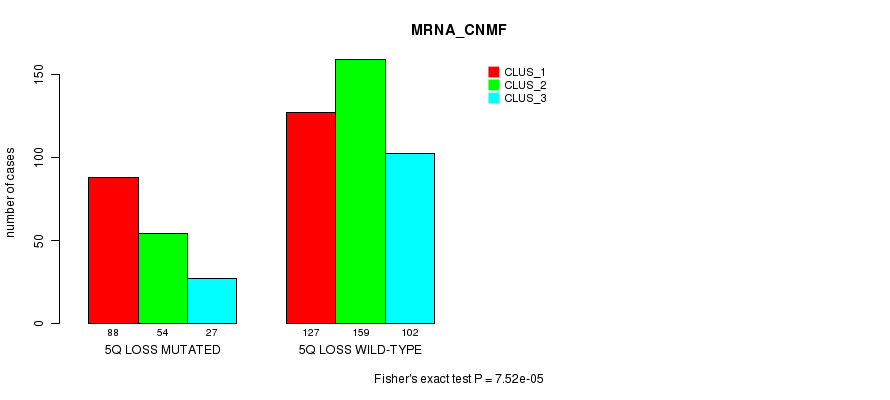 Table S47. Gene #50: '5q loss mutation analysis' versus Clinical Feature #1: 'MRNA_CNMF'