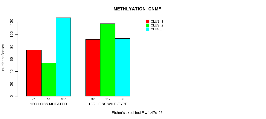 Figure S52. Get High-res Image Gene #65: '13q loss mutation analysis' versus Clinical Feature #6: 'METHLYATION_CNMF'