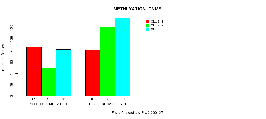 Figure S54. Get High-res Image Gene #67: '15q loss mutation analysis' versus Clinical Feature #6: 'METHLYATION_CNMF'