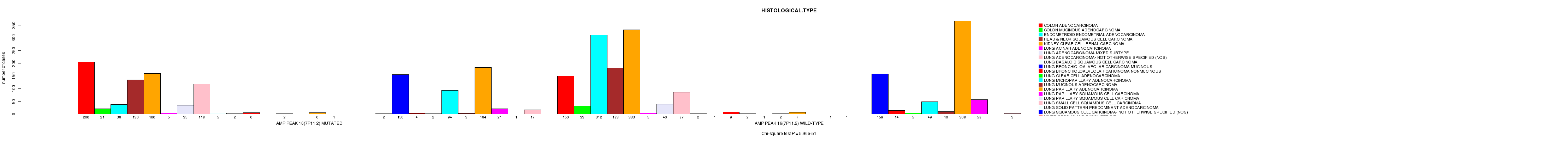 Table S617. Clustering Approach #91: 'Del Peak 51(Xp21.1) mutation analysis' versus Clinical Feature #6: 'HISTOLOGICAL.TYPE'