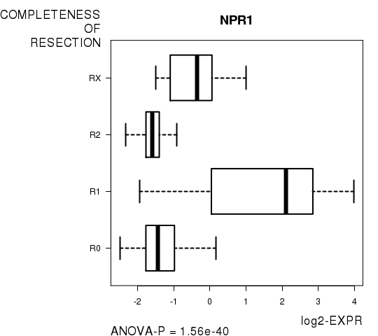 Figure S16. Get High-res Image As an example, this figure shows the association of NPR1 to 'COMPLETENESS.OF.RESECTION'. P value = 1.56e-40 with ANOVA analysis.