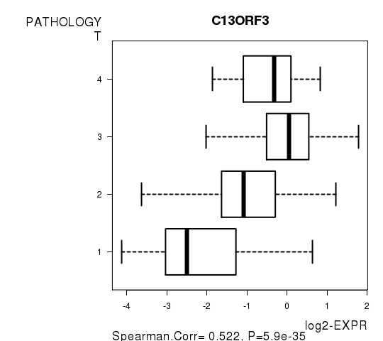 | TUMOR STAGE | Spearman correlation test | N=7398 | higher stage | N=3999 | lower stage | N=3399 |