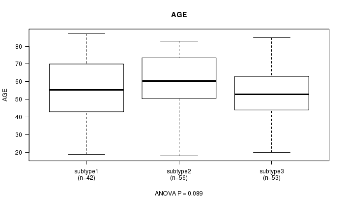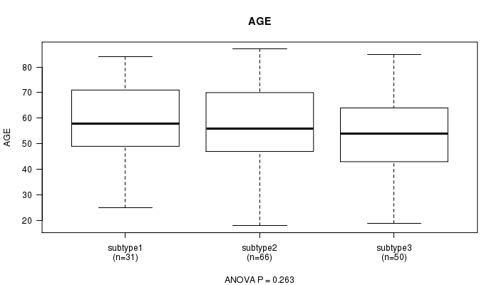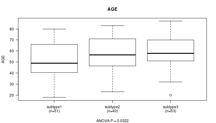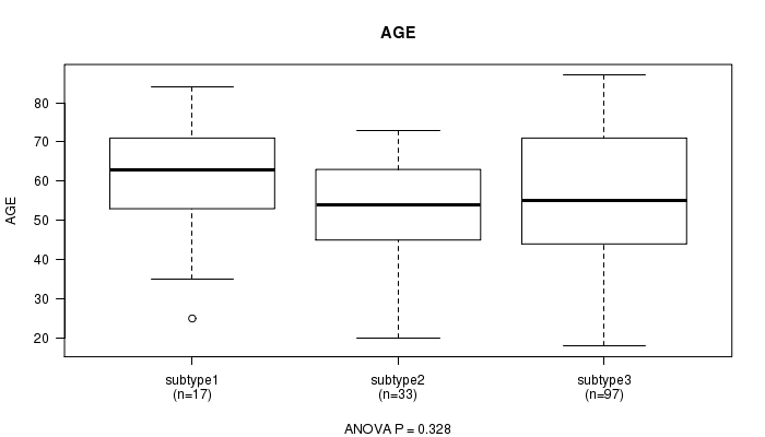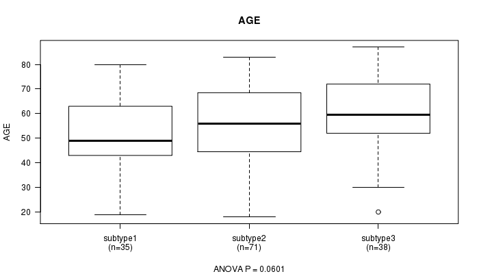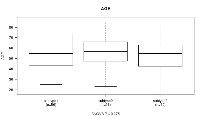 Figure S44. Get High-res Image Clustering Approach #8: 'MIRSEQ CHIERARCHICAL' versus Clinical Feature #2: 'AGE'