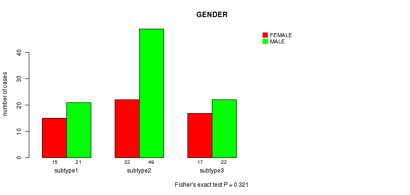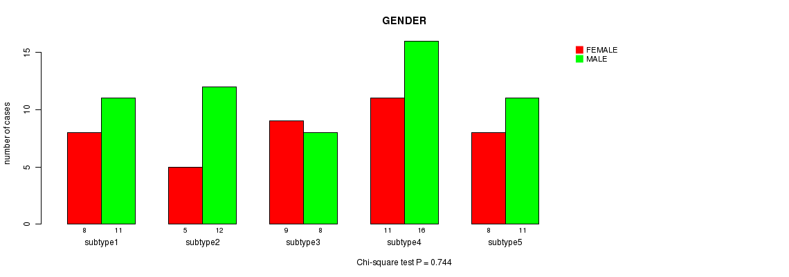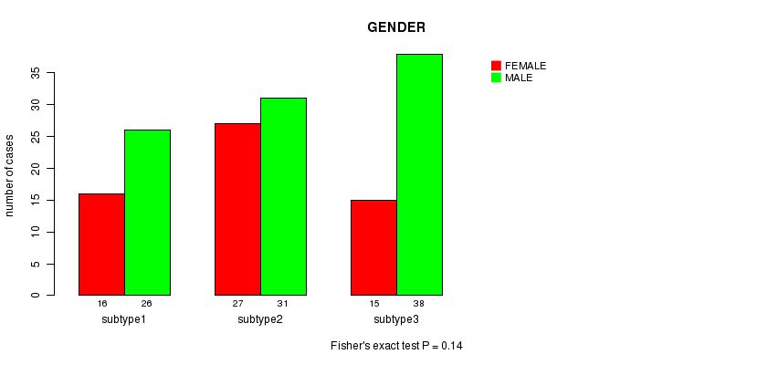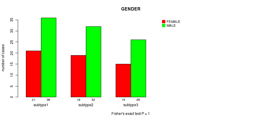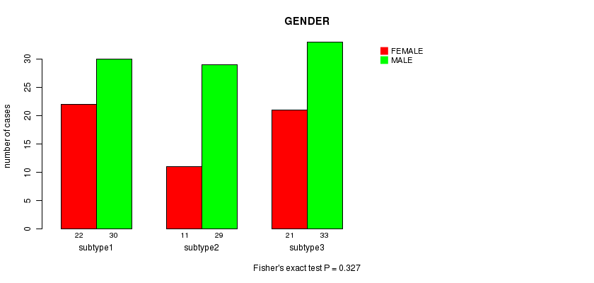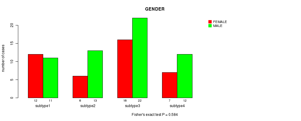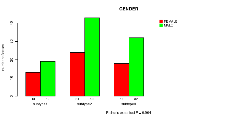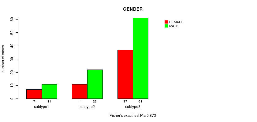 Figure S45. Get High-res Image Clustering Approach #8: 'MIRSEQ CHIERARCHICAL' versus Clinical Feature #3: 'GENDER'