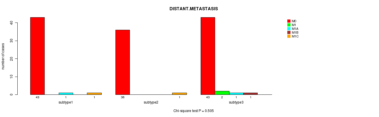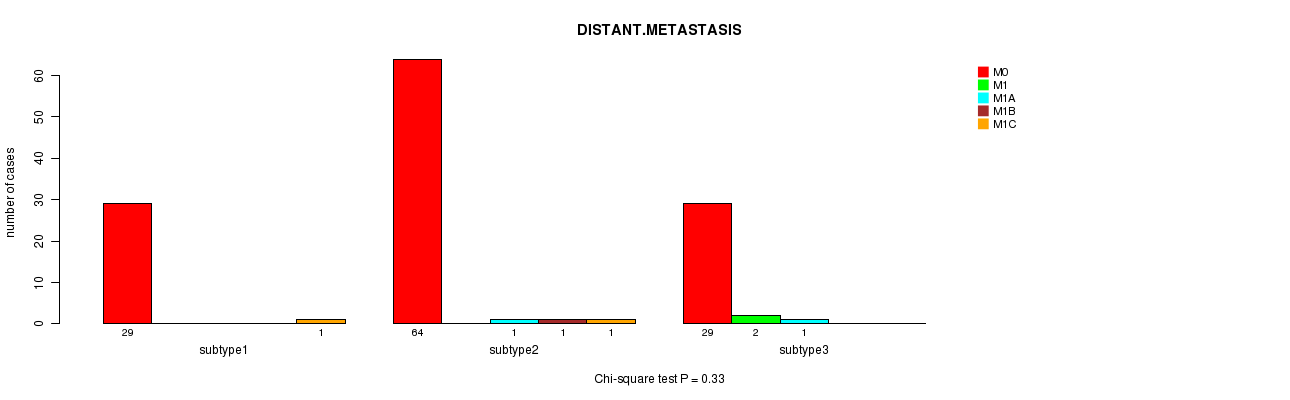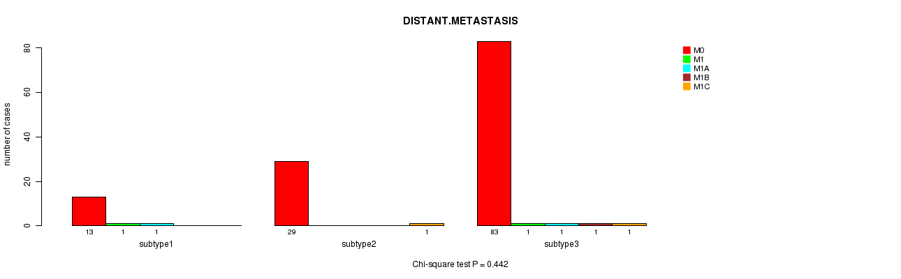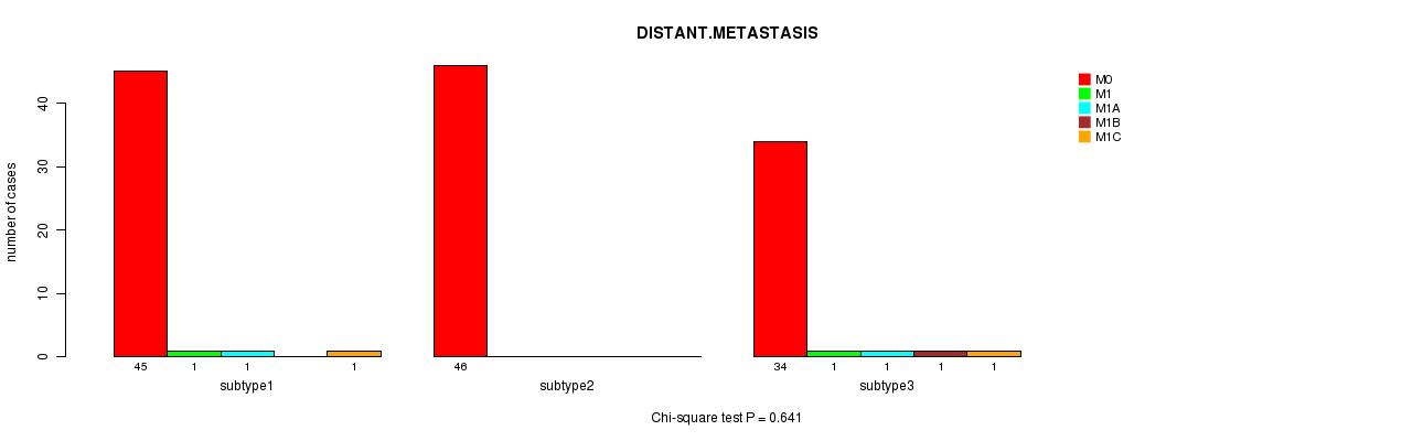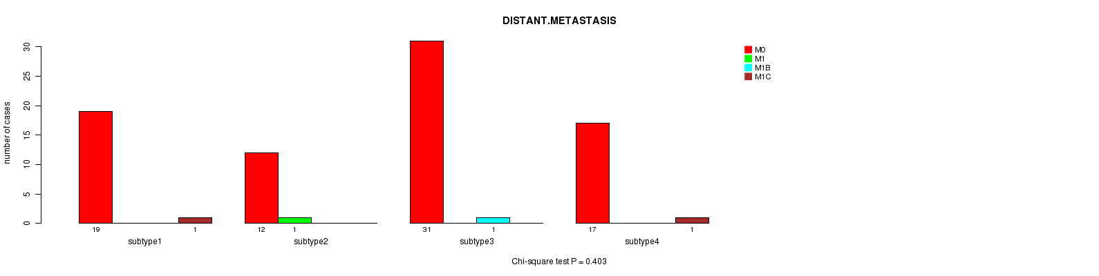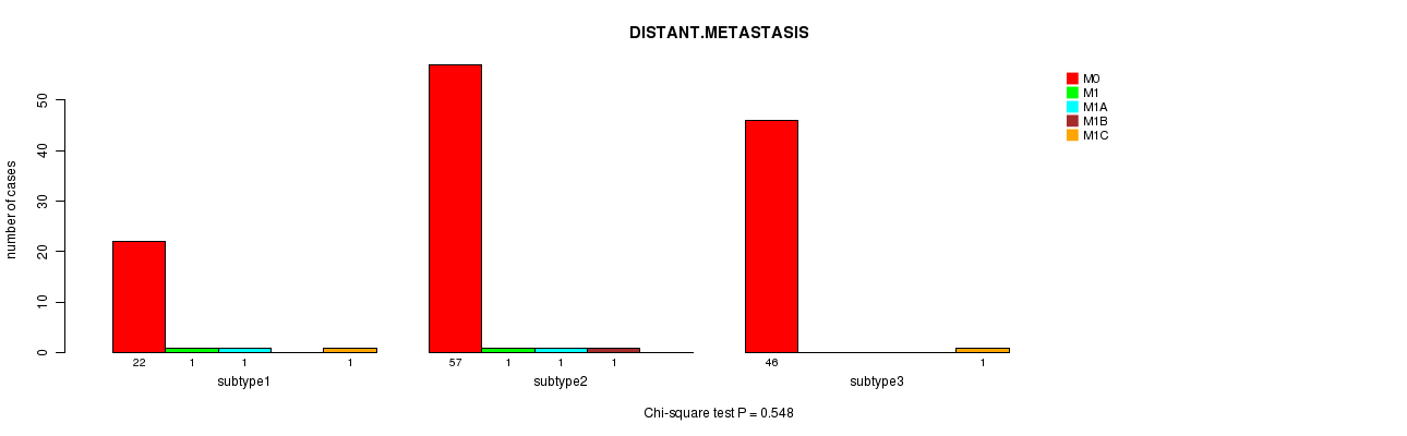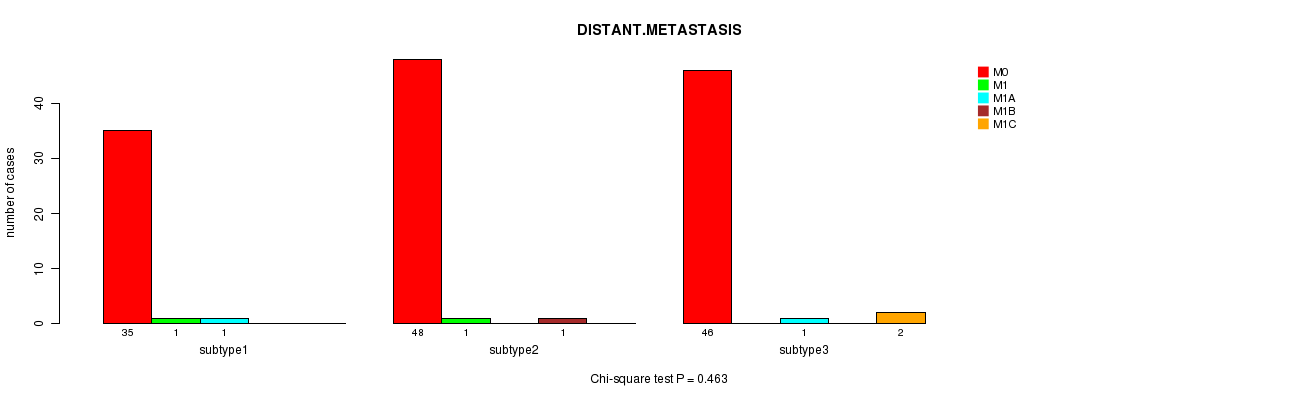 Figure S46. Get High-res Image Clustering Approach #8: 'MIRSEQ CHIERARCHICAL' versus Clinical Feature #4: 'DISTANT.METASTASIS'