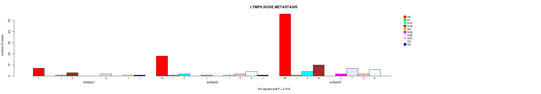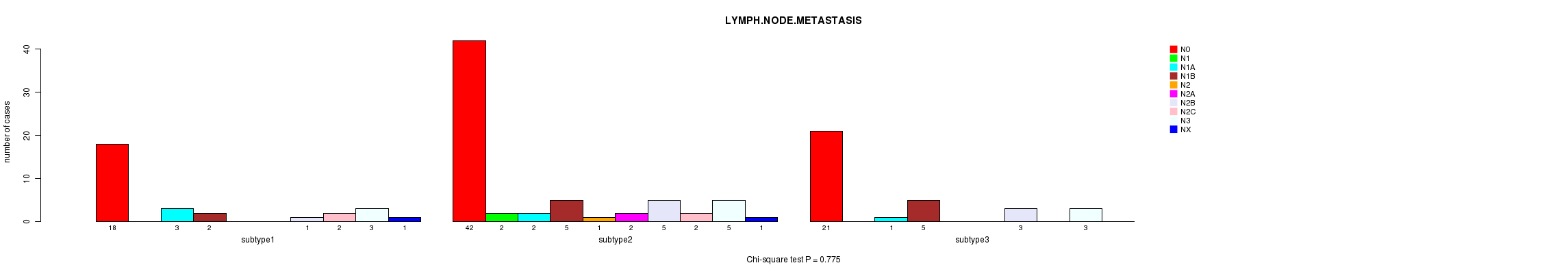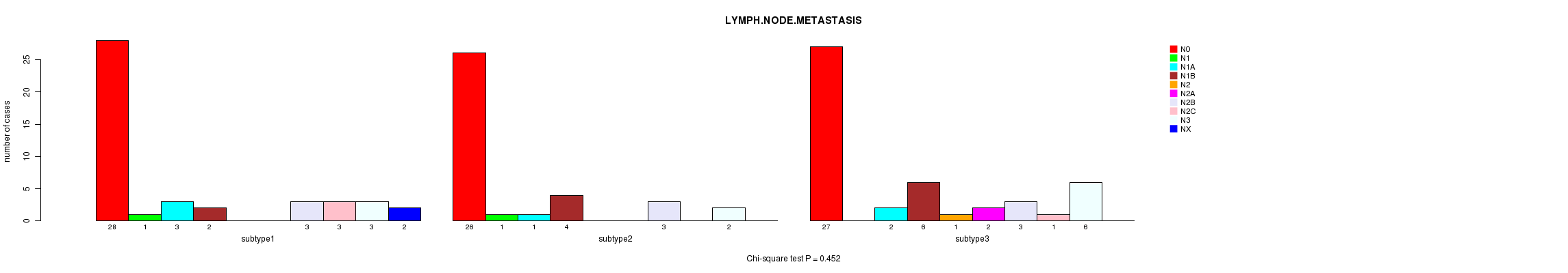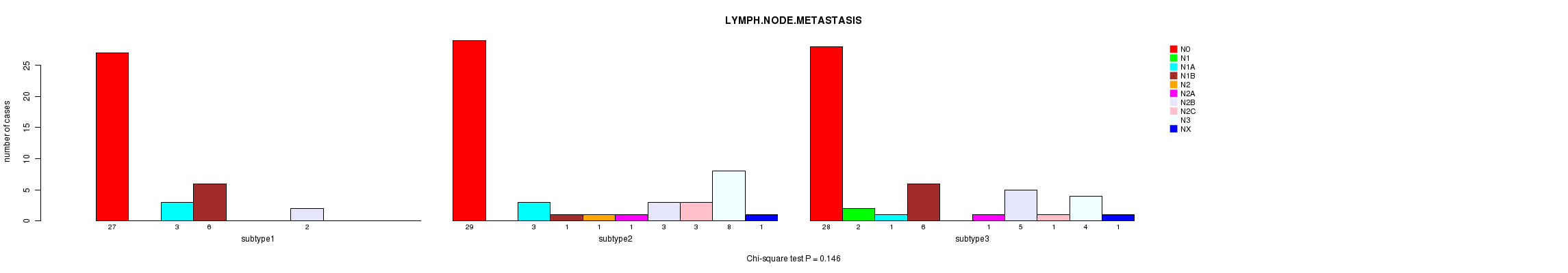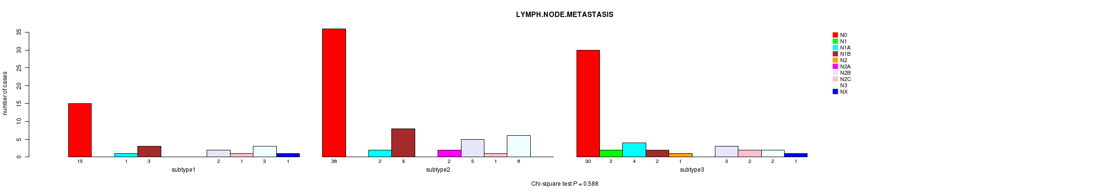 Figure S35. Get High-res Image Clustering Approach #6: 'RNAseq cHierClus subtypes' versus Clinical Feature #5: 'LYMPH.NODE.METASTASIS'