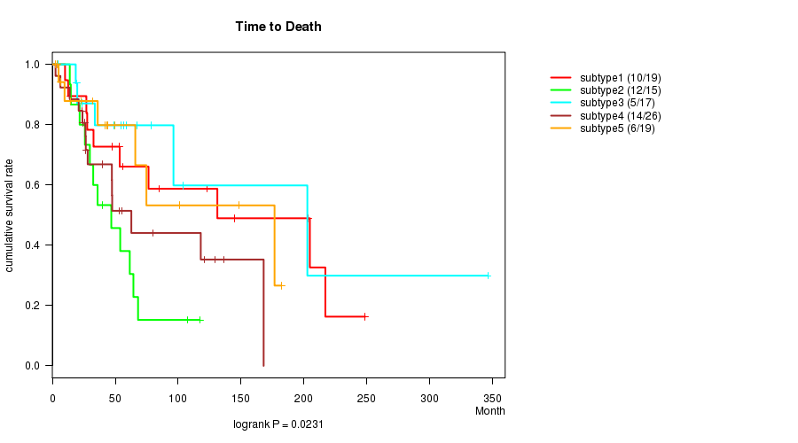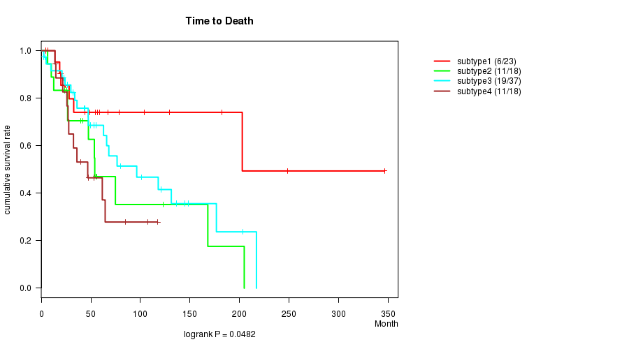 Figure S43. Get High-res Image Clustering Approach #8: 'MIRSEQ CHIERARCHICAL' versus Clinical Feature #1: 'Time to Death'