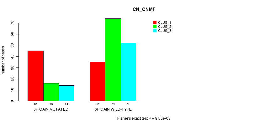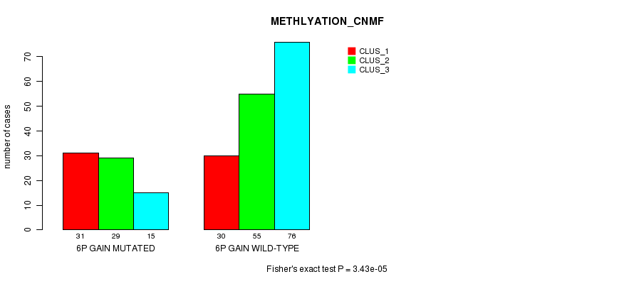6p gain cnv correlated to 'CN_CNMF' and 'METHLYATION_CNMF'.