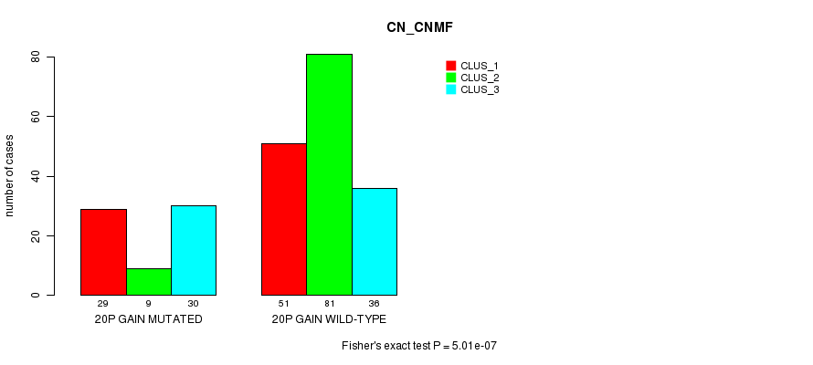 20p gain cnv correlated to 'CN_CNMF' and 'MRNASEQ_CNMF'.