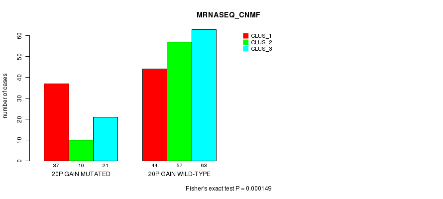 Figure S16. Get High-res Image Gene #34: '20p gain mutation analysis' versus Clinical Feature #5: 'MRNASEQ_CNMF'