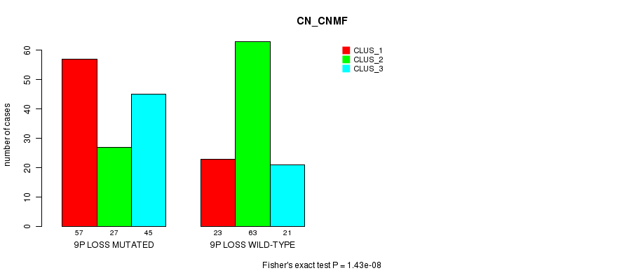 9p loss cnv correlated to 'CN_CNMF' and 'METHLYATION_CNMF'.
