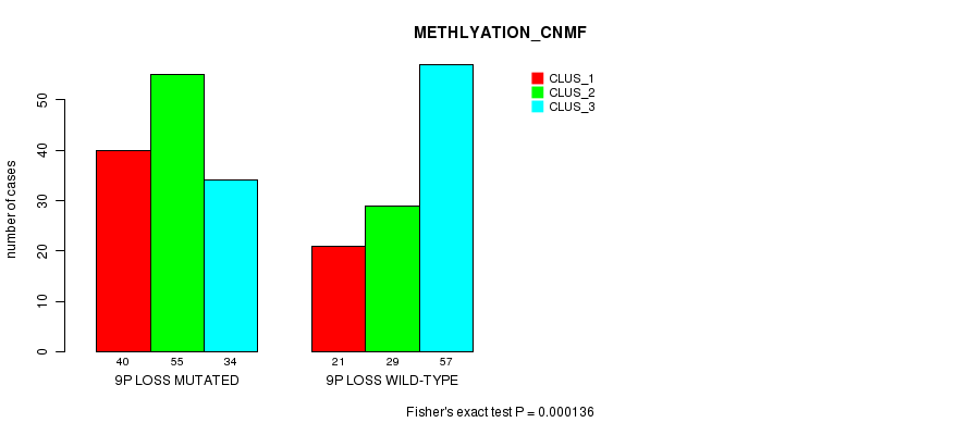 Figure S20. Get High-res Image Gene #55: '9p loss mutation analysis' versus Clinical Feature #2: 'METHLYATION_CNMF'