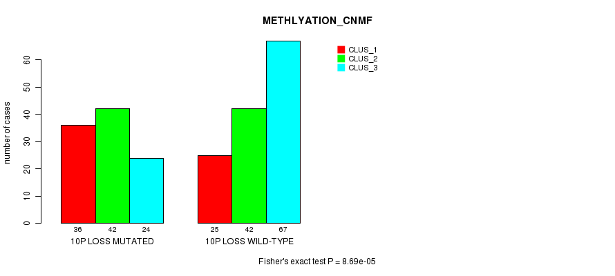 Figure S22. Get High-res Image Gene #57: '10p loss mutation analysis' versus Clinical Feature #2: 'METHLYATION_CNMF'