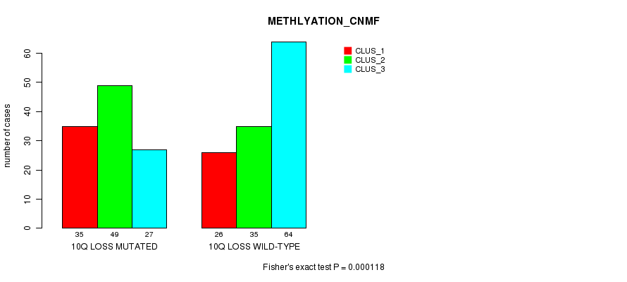 Figure S25. Get High-res Image Gene #58: '10q loss mutation analysis' versus Clinical Feature #2: 'METHLYATION_CNMF'