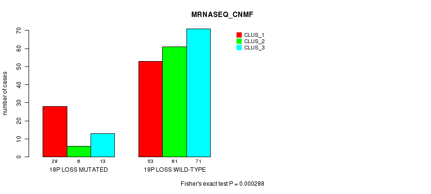 Figure S28. Get High-res Image Gene #70: '18p loss mutation analysis' versus Clinical Feature #5: 'MRNASEQ_CNMF'